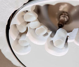 Digital konstruierte Kronen und Brückengerüste werden hochpräzise und computergestützt maschinell gefräst. Die so hergestellten Gerüste aus Zirkon, Nichtedelmetall oder Kunststoff dienen als Grundlage weiterer ästhetischer Zahnrekonstruktionen.