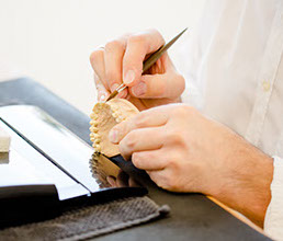 Um anspruchsvolle ästhetische Lösungen im Bereich des festsitzenden Zahnersatzes zu realisieren, nutzen wir Hochleistungs-Press- und Schichtkeramiken. Veneers, Keramikinlays, Einzelkronen und Brückenversorgungen bis hin zur »Full Mouth« (Komplett) Restauration werden so individuell hergestellt.